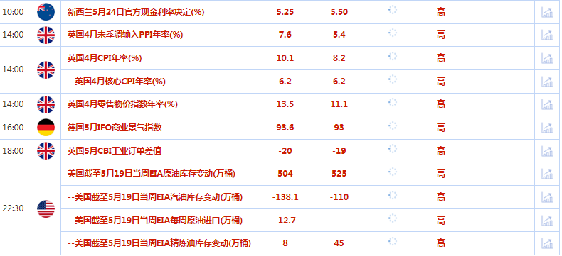 周二稍早的数据显示,美国4月新屋销售跃升至13个月来的最高水平。标普全球5月追踪制造业和服务业的美国综合采购经理人指数(PMI)初值攀升至54.5,为2022年4月以来的最高水平,4月终值为53.4。
