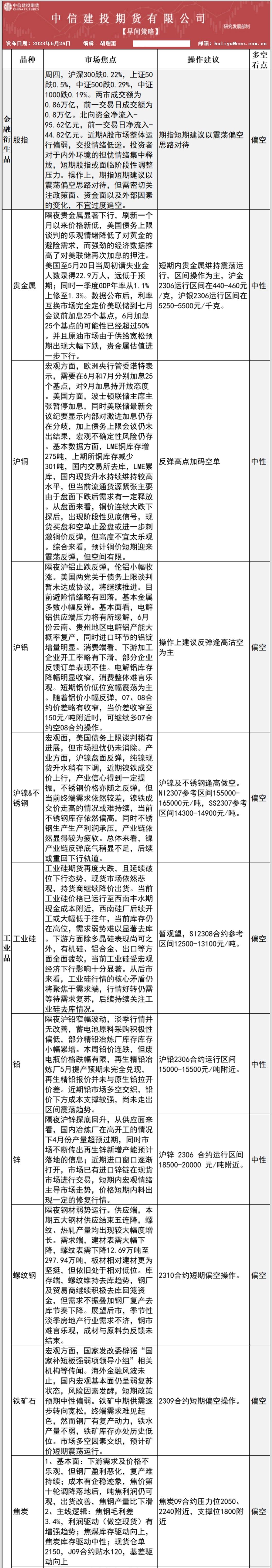 中信建投期货5月26日早间交易策略