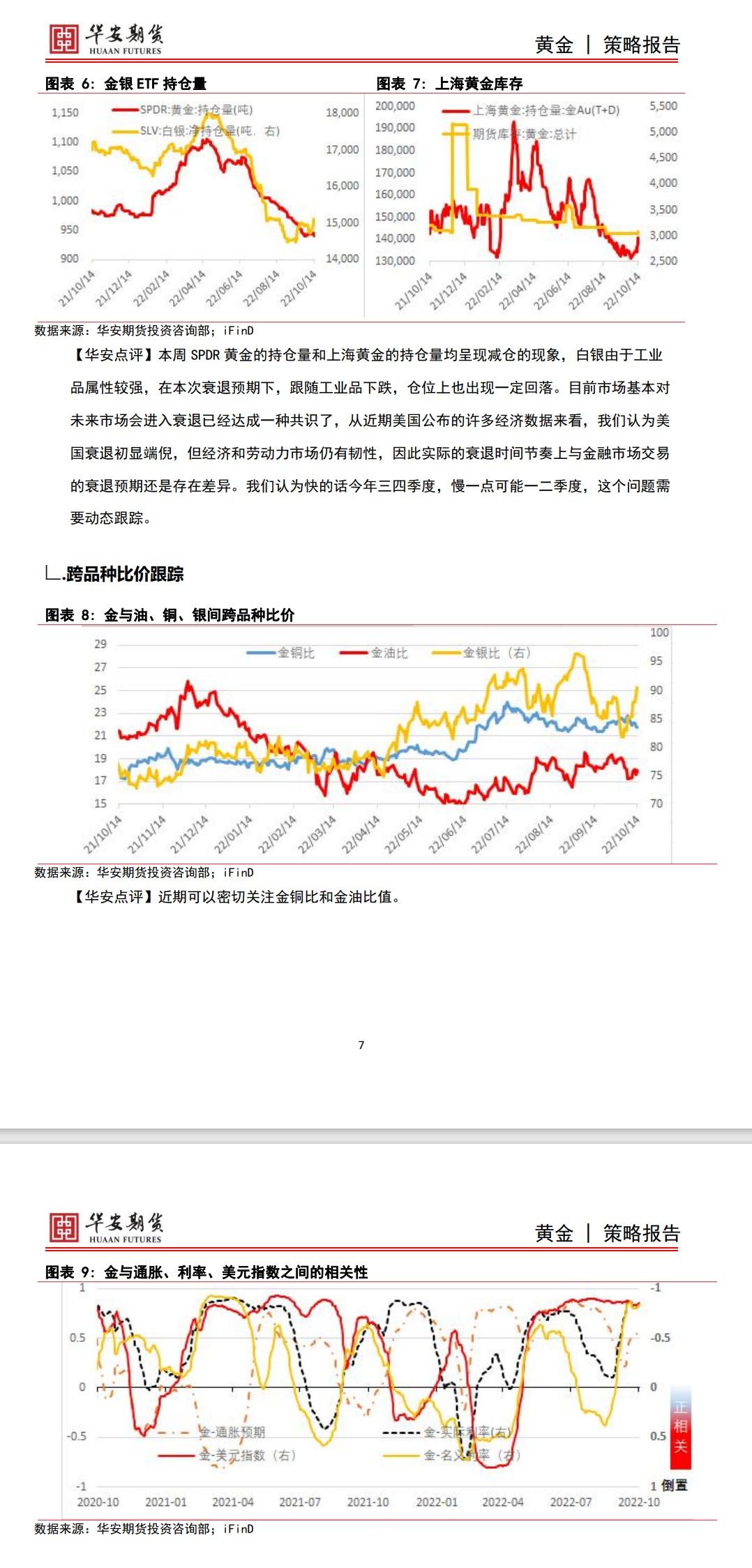 过去一周SPDR黄金的持仓量和上海黄金的持仓量均呈现减仓的现象,白银由于工业品属性较强,在本次衰退预期下,跟随工业品下跌,仓位上也出现一定回落。目前市场基本对未来市场会进入衰退已经达成一种共识了,从近期美国公布的许多经济数据来看,我们认为美国衰退初显端倪,但经济和劳动力市场仍有韧性,因此实际的衰退时间节奏上与金融市场交易的衰退预期还是存在差异。我们认为快的话今年三四季度,慢一点可能一二季度,这个问题需要动态跟踪。