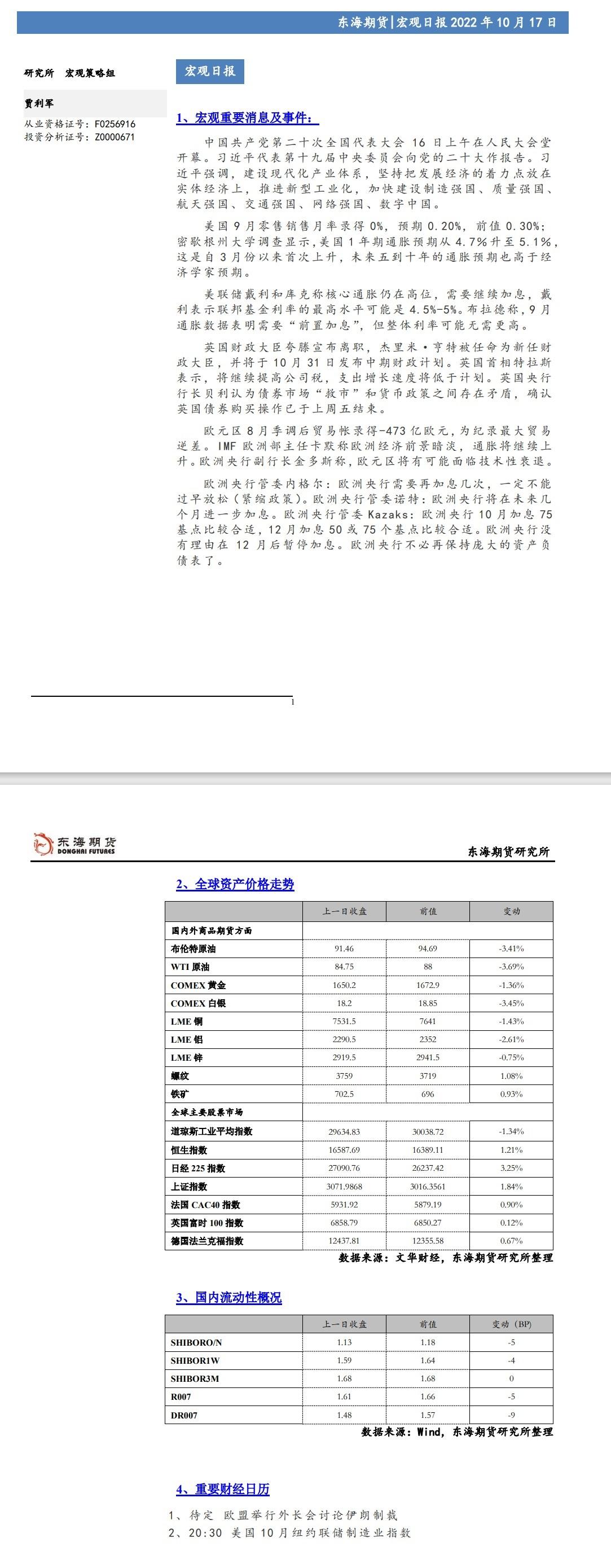 美联储戴利和库克称核心通胀仍在高位,需要继续加息,戴利表示联邦基金利率的最高水平可能是4.5%-5%。布拉德称,9月通胀数据表明需要“前置加息”,但整体利率可能无需更高。