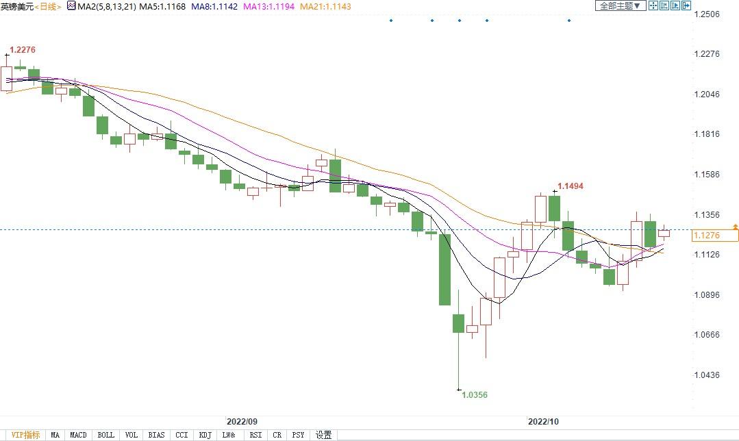 北京时间10月17日14:24,英镑兑美元报1.1274/76。