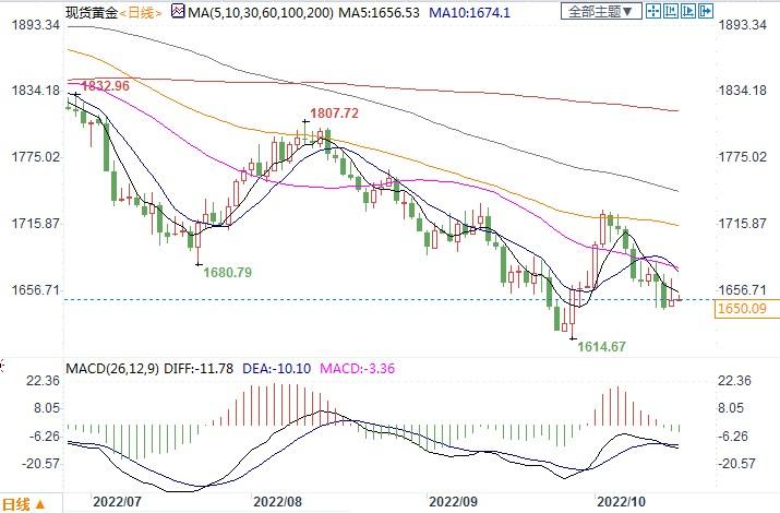 北京时间10月18日10:43 现货黄金 报 1650.09美元/盎司