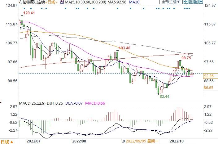 北京时间10月18日13:25,布伦特原油连续报92.24美元/桶