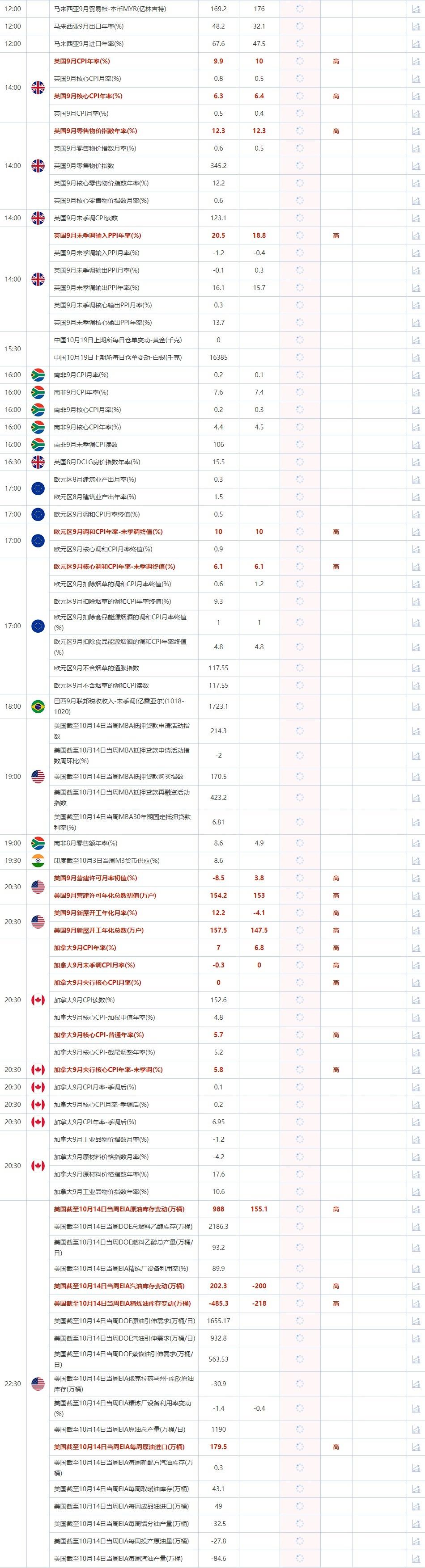 14:00 英国9月CPI年率(%) , 前值 9.9 , 预期值 10 , 公布值:待发布